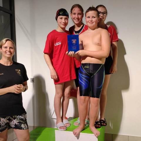 Gewonnen haben Lina Flüß, Lena Slaby, Mila Fee Krause und Max Simon zudem die 4x 50m Lagen mixed Staffel in einem zuerst sehr spannenden Rennen und konnten sich gegen die SG Lünen, SF Unna und TV Werne im Verlauf des Rennens in diesem Jahr klar durchsetzen.